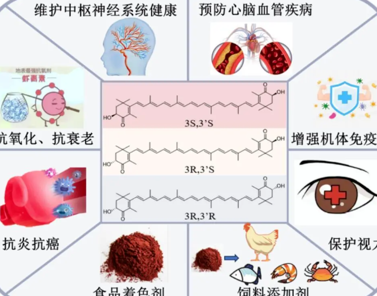 骨关节炎(OA)表现为关节软骨完整性受损,软骨下骨板及关节边缘骨病变,即关节软骨的退变和继发性骨质增生。虾青素(Astaxanthin),全称为3,3-二羟基-β胡萝卜素-4,4-酮,是一种含氧的类胡萝卜素,其分子结构的碳骨架由中央多聚烯链和位于两侧的芳香环组成,并在每个芳香环上各有一个酮基(=O)和一个羟基(-OH)。由于其有极强的抗氧化能力,具有抗氧化、防止心血管疾病、提高免疫力、抗癌、抗骨质疏松等多种生物学活性