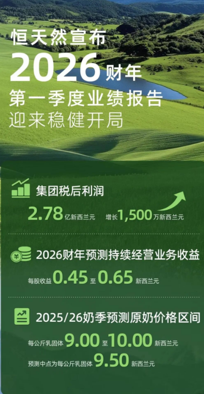 12月4日,新西兰乳业巨头恒天然合作社(Fonterra)发布2026财年第一季度业绩报告,税后利润达2.78亿新西兰元(约合人民币11.35亿元),同比增长1500万新西兰元(约合人民币6124万元)。