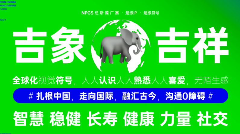在此次品牌形象升级中,纽斯葆广赛做了一个大胆的创新——将吉象LOGO人格化,设计出了长着一双黑亮圆眼、一对绿叶耳朵及绿绒身躯并爱佩戴蓝绒围巾的吉象。