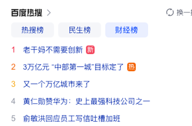 《新品略财经》关注到,12月6日,“老干妈不需要创新”话题曾一度冲上百度热搜财经榜第一名,把我们每个人所熟知的辣椒酱老牌子推上热搜。