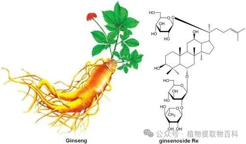 真正让西洋参“站住脚”的,是它体内那一组核心活性成分:西洋参皂苷(Ginsenosides)。很多终端消费者并不知道皂苷是什么,但原料端的人都很清楚,西洋参的所有“价值”,几乎都浓缩在这几个字里。皂苷不是单一物质,而是一大类结构复杂的三萜类化合物。西洋参和亚洲人参最大的不同,也正体现在皂苷组成比例上。西洋参中以 Rb1、Re 等成分为主,整体作用更偏向温和调节,而不是强刺激型。这也是为什么它更容易被用在长期调理型产品中,而不是短期“猛效”产品。